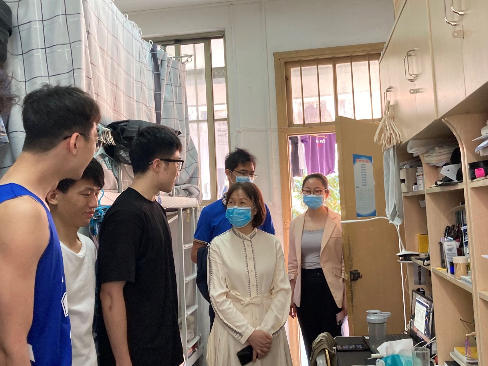 为贯彻落实校党委王乃学书记3月31日到学院调研本科教学质量作出的重要指示精神,根据学院党委统一部署,学院学工组调整工作方式方法,进一步加强对学生的学习、生活的指导。4月7日上午,学院党委副书记郭海燕带领辅导员孙晓黎、韦海、刘春霞,前往西校园本科生宿舍深入了解学生在宿舍线上学习及生活情况,送去学院的关心与问候。