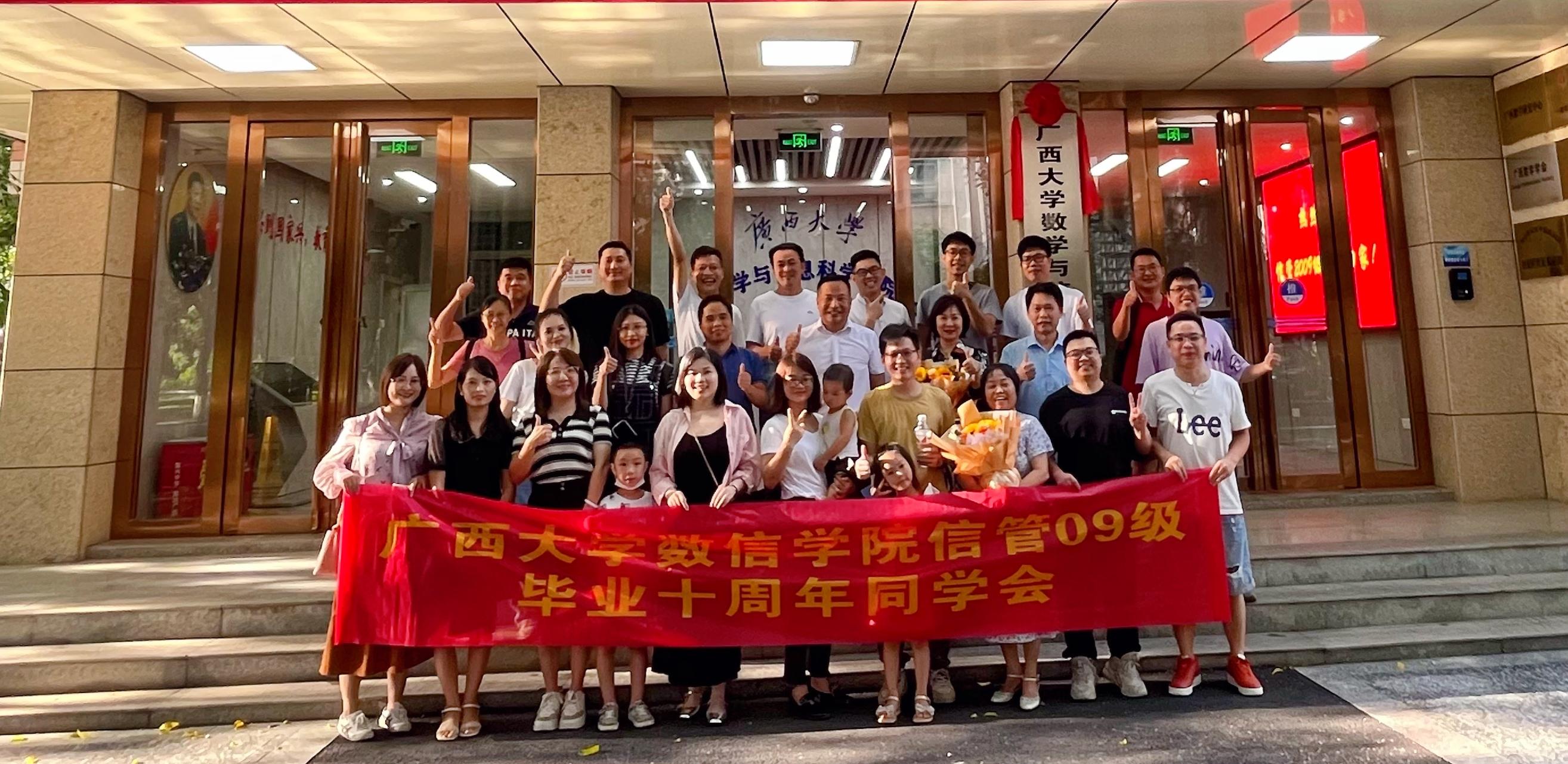 金秋八月,丹桂飘香,硕果累累。8月26日下午,信管专业2009级校友重返母校并在学院举行毕业十周年座谈交流会,院长郭真华、院党委副书记郭海燕、副院长黄敢基等学院领导出席座谈会,学院团委书记孙晓黎、教师吕跃进、周婉枝、范英梅等一同参加座谈。