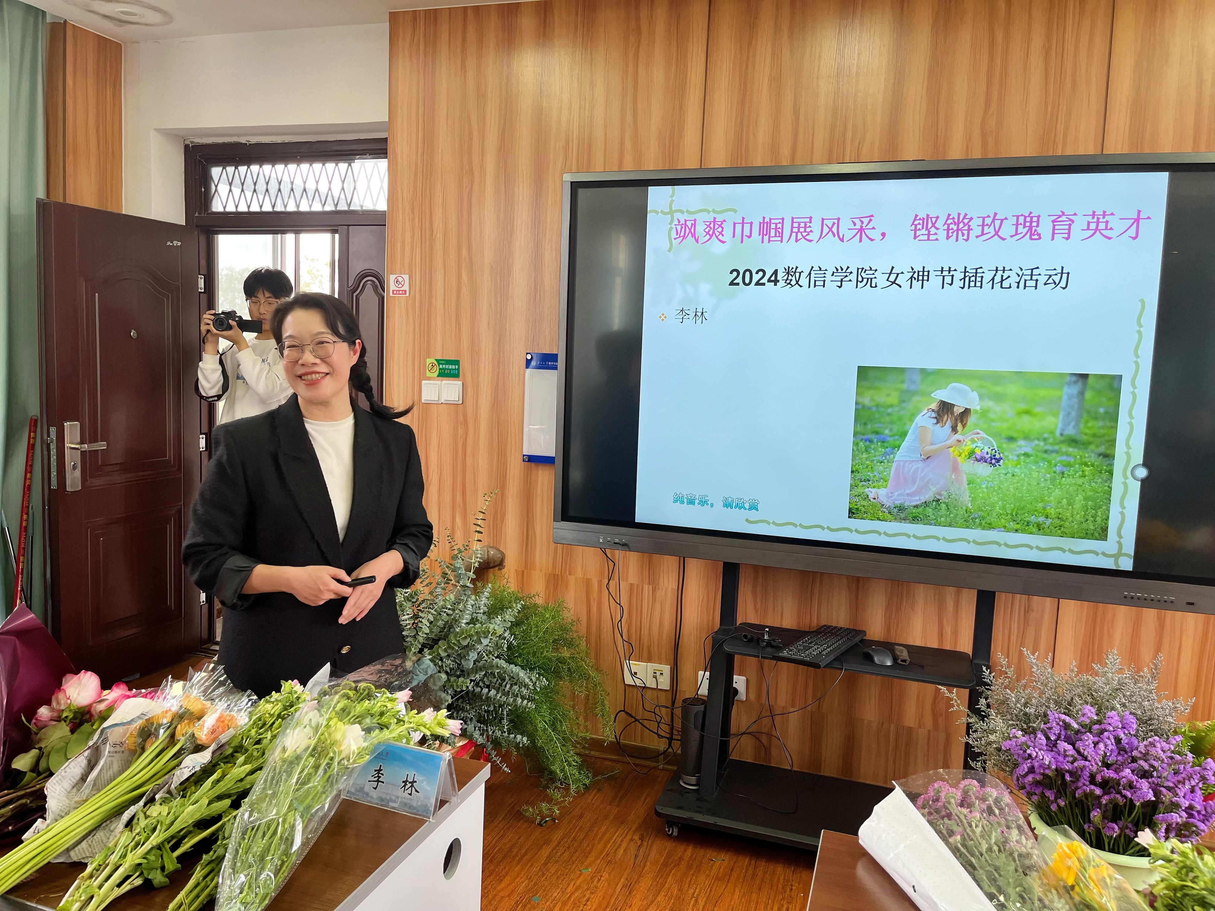 最美三月天,鲜花展春颜。为庆祝迎第114个“三八”国际妇女节,弘扬时代精神,展现巾帼风采,3月12日下午,数学与信息科学学院在学院501室举行“飒爽巾帼展风采 铿锵玫瑰育英才”——2024年数信学院女神节插花活动。活动特邀广西艺术学院李林教授授课并进行现场插花实操指导,学院党委副书记唐旭彬主持活动。