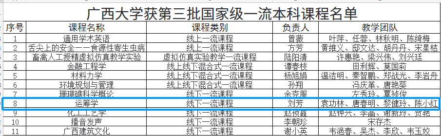 近日,教育部公布了第三批国家级一流本科课程认定结果,我院刘芳教授主持的《运筹学》成功入选国家级第三批一流本科课程。