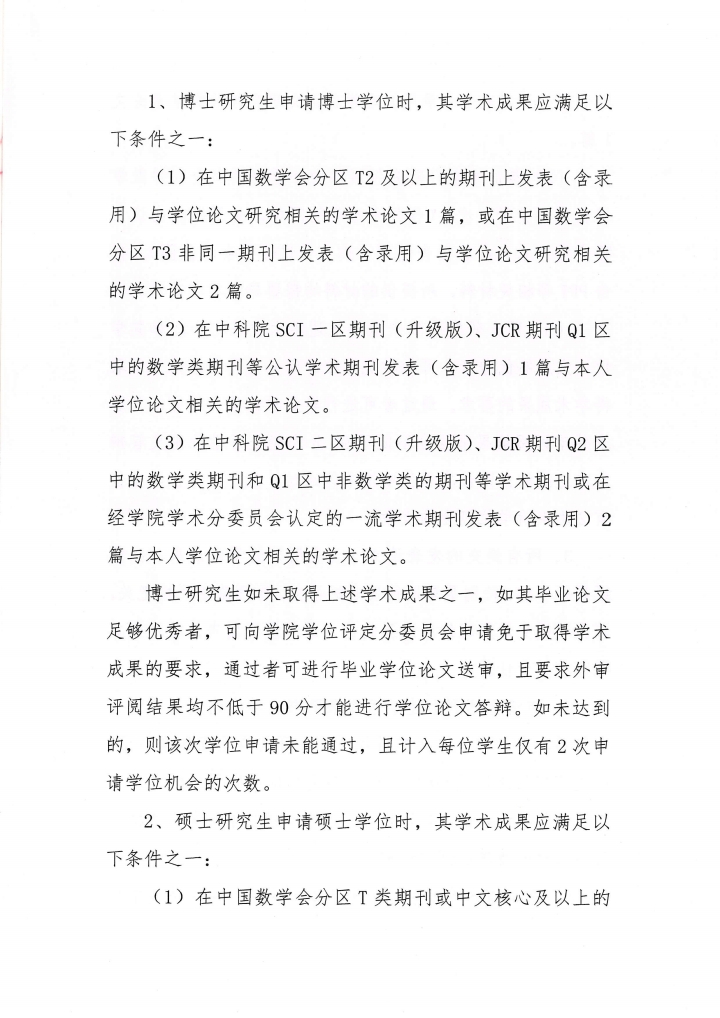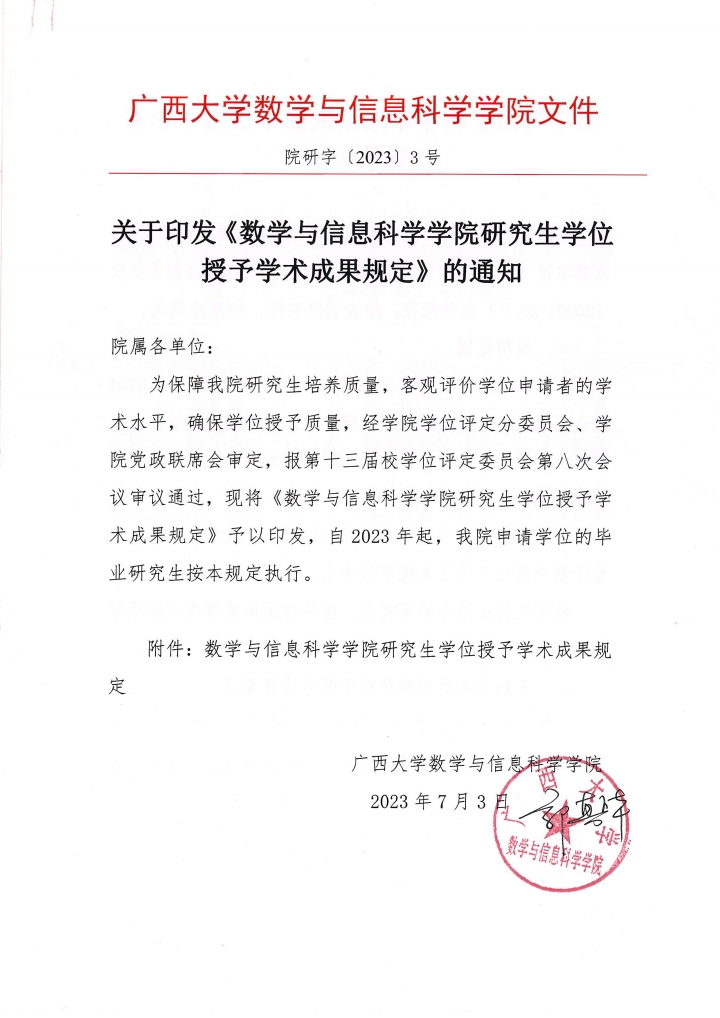 关于印发《数学与信息科学学院研究生学位 授予学术成果规定》的通知